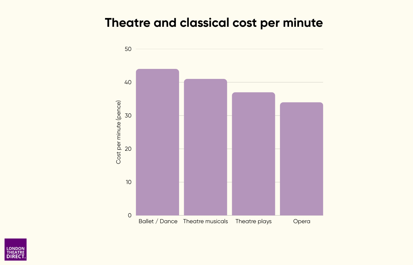 - Opera is the lowest cost-per-minute theatre category at 33.7p/min